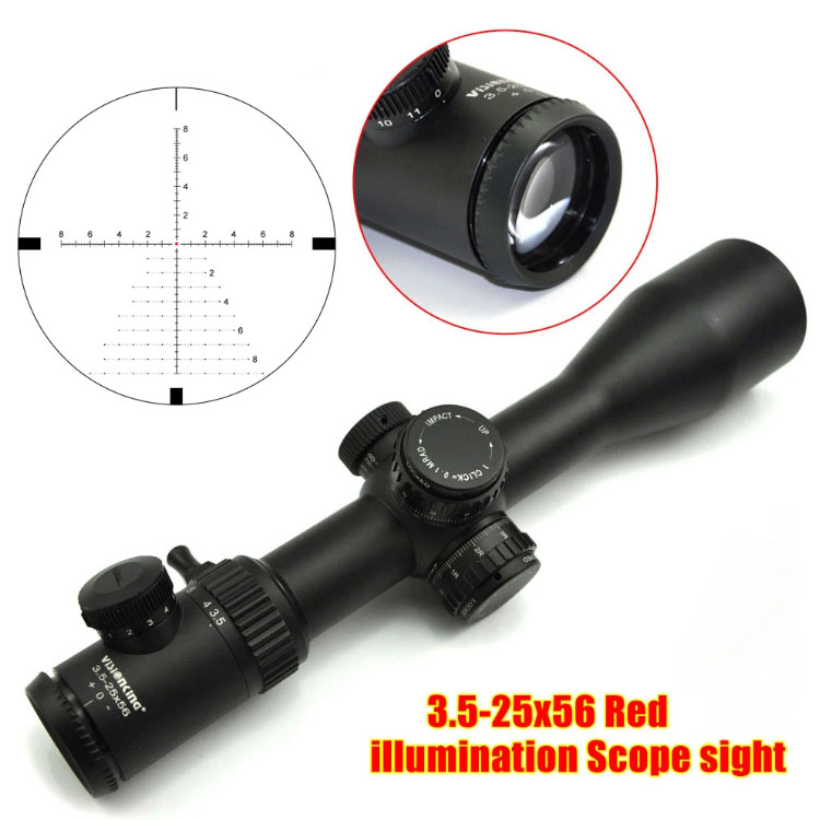Visionking Fast Focusing 3.5-25X56 Riflescope Fmc 34mm Tube Mil-DOT Illuminated Hunting Tactical Nitrogen Optical Sight